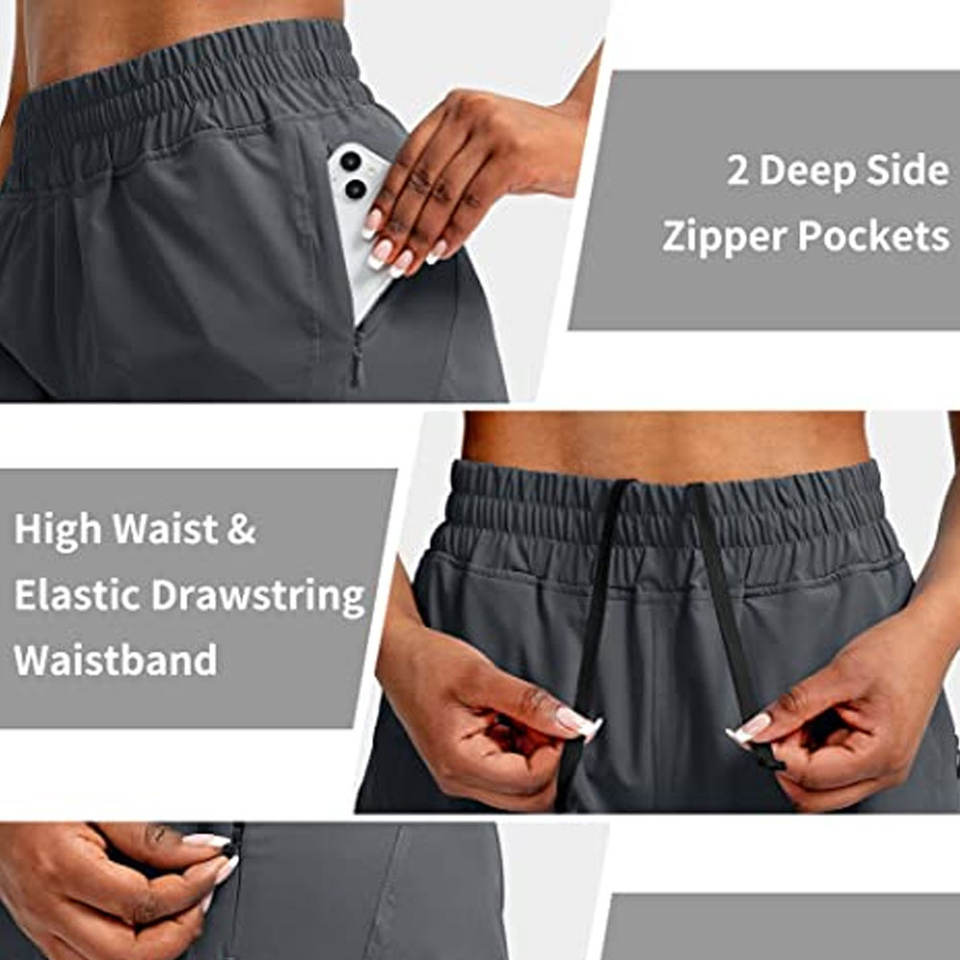 Short de course pour femme avec poches zippées Short de sport athlétique à taille haute