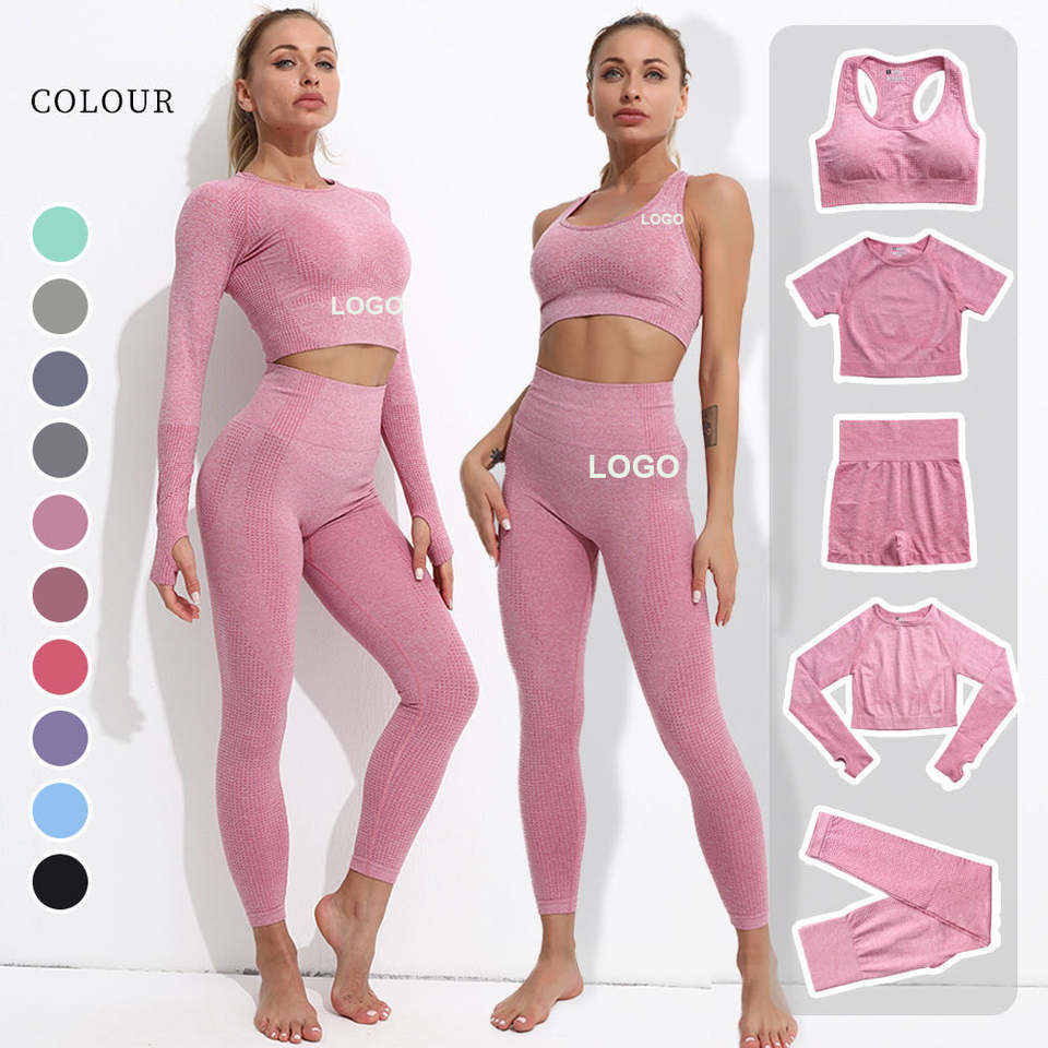 Ensemble de sport sans couture pour homme : crop top, brassière de sport, short, leggings, taille élastique, manches longues – Idéal pour la gym, le yoga et le fitness