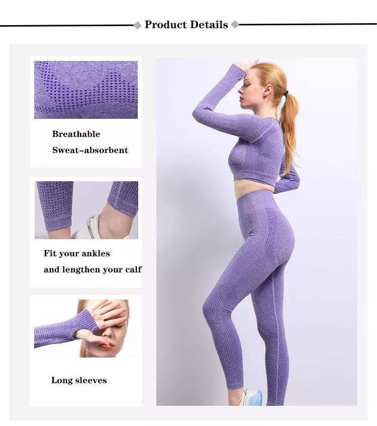 Ensemble 5 pièces de vêtements de sport sans coutures pour hommes : brassière de sport, crop top, haut à manches longues, leggings taille mi-haute, séchage rapide, écologique