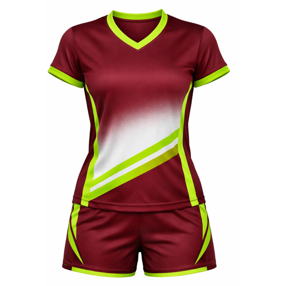 Ensemble de maillot de volley-ball à manches courtes pour femmes, dégradé de rouge bordeaux et vert lime, sublimation, maillot de volley-ball professionnel, kit d'équipe
