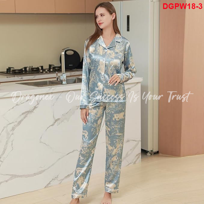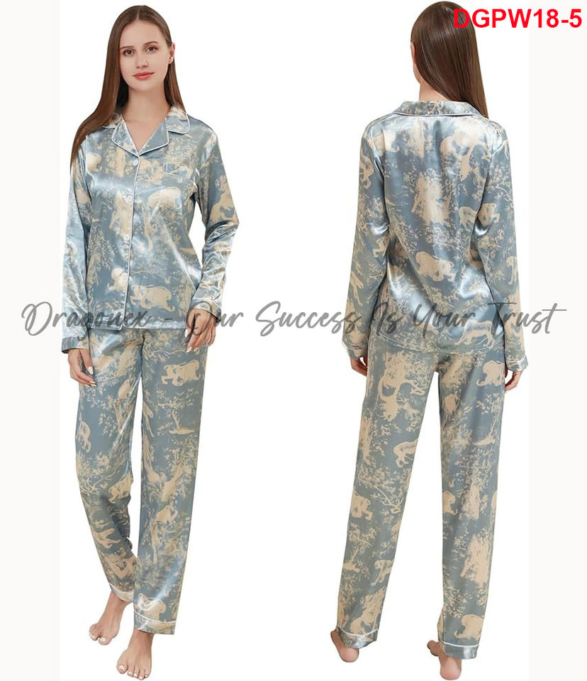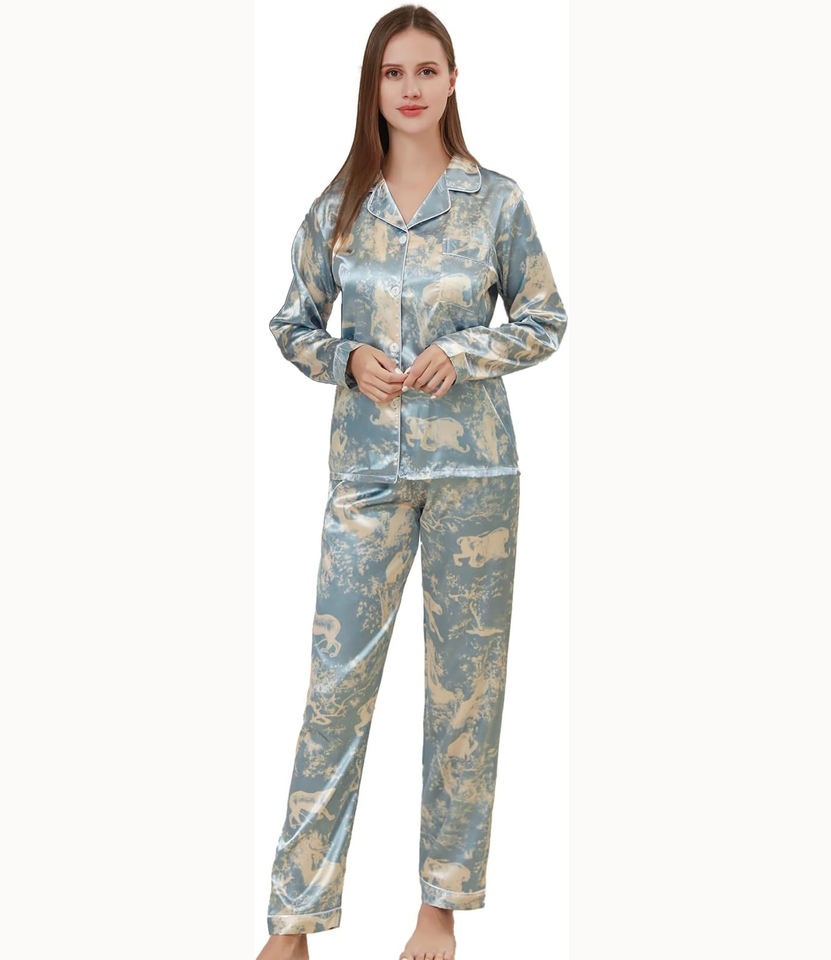Ensemble de pyjama en satin soyeux pour femmes haut à manches longues pantalons longs vêtements de nuit pyjamas boutonnés sont imprimés avec des motifs abstraits simples