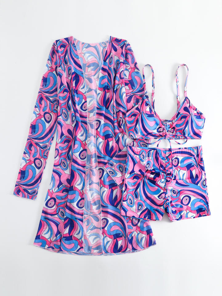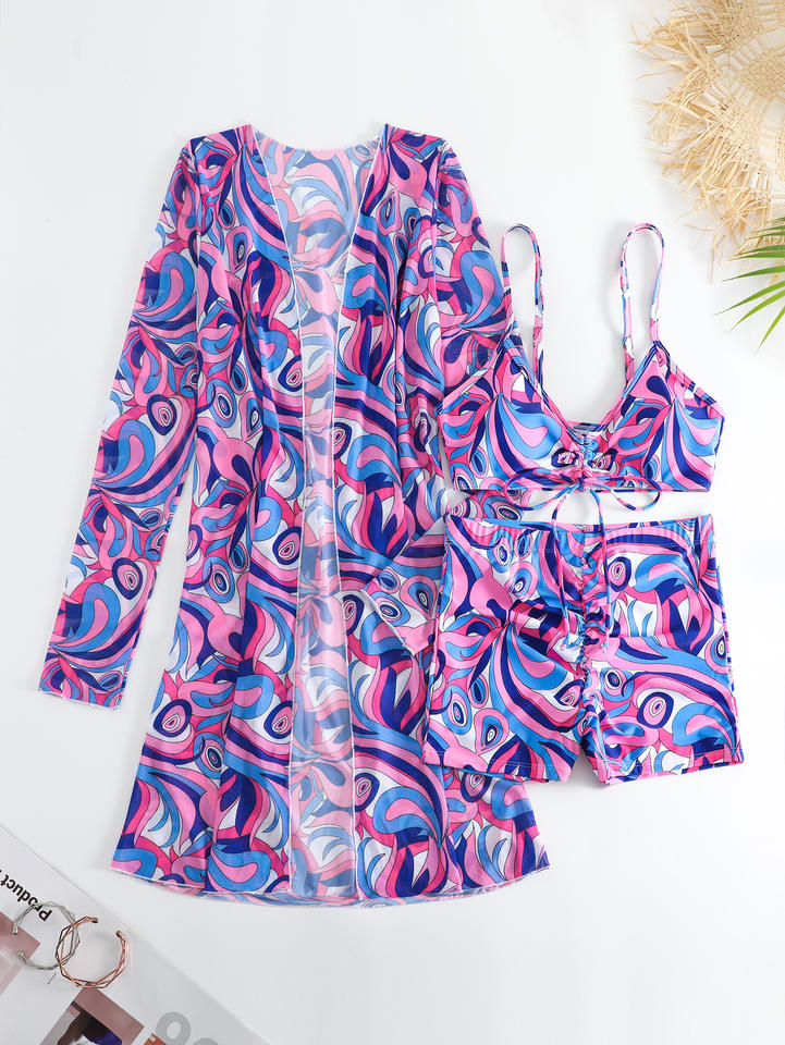 Maillot de bain bikini trois pièces pour femmes, réversible, sans couture, haut à manches longues, respirant, séchage rapide, imprimé numérique