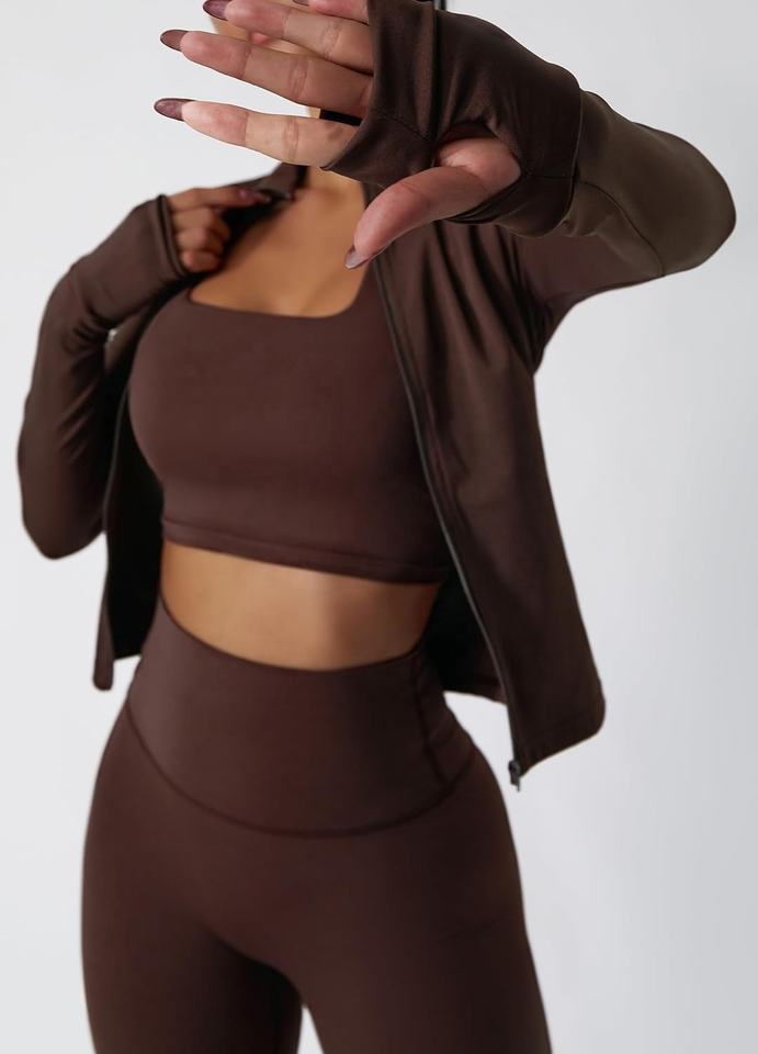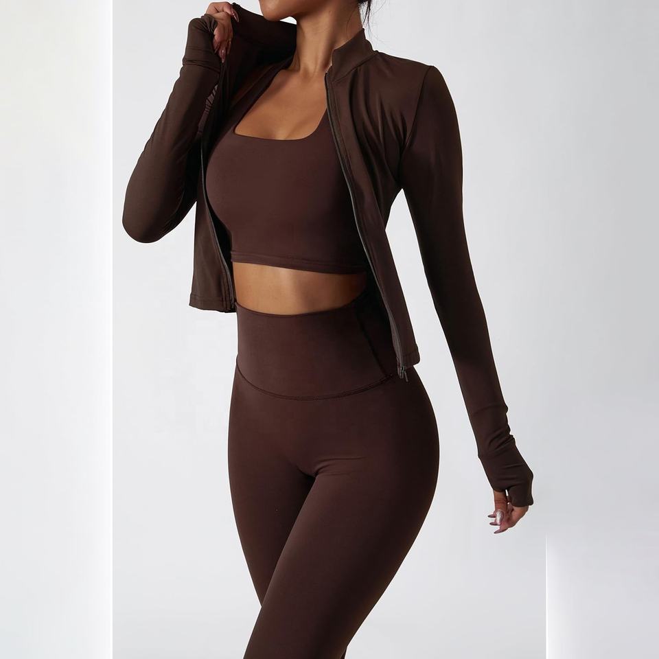 Ensemble de sport trois pièces pour femmes : Leggings sans couture taille haute, soutien-gorge de sport et crop top