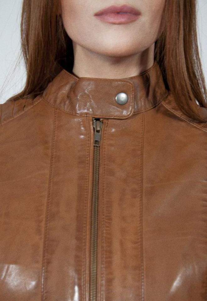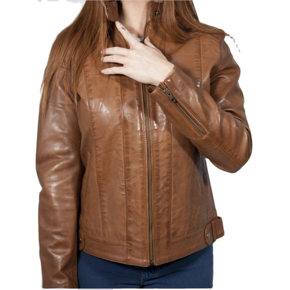 Stylish Ladies Biker Fashion Tressa Women's Cognac Leather Jacket Soft Genuine Sheep Skin Outerwear Finished Processing