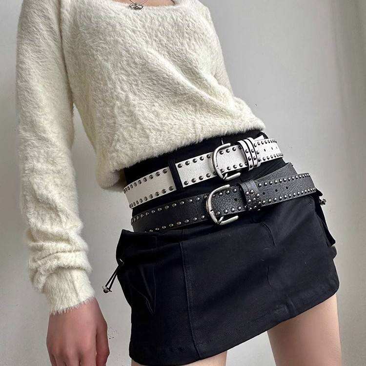 Femmes Vintage Clouté Strass Ceinture Casual Business Style Alliage Boucle Noir Marron Café Ceintures pour Jeans Jupes