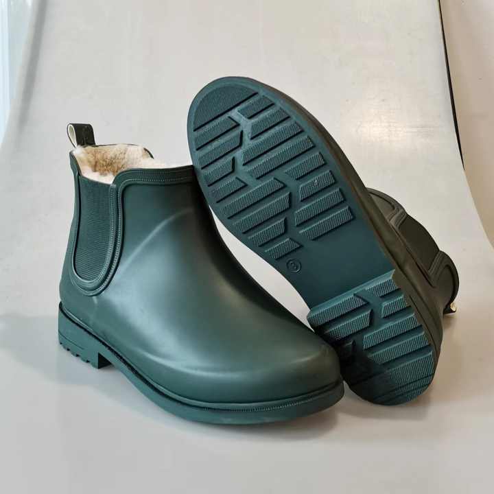 Bottes de pluie en caoutchouc pour femmes imperméable à la cheville avec doublure en fourrure bottes de pluie Chelsea à pied large