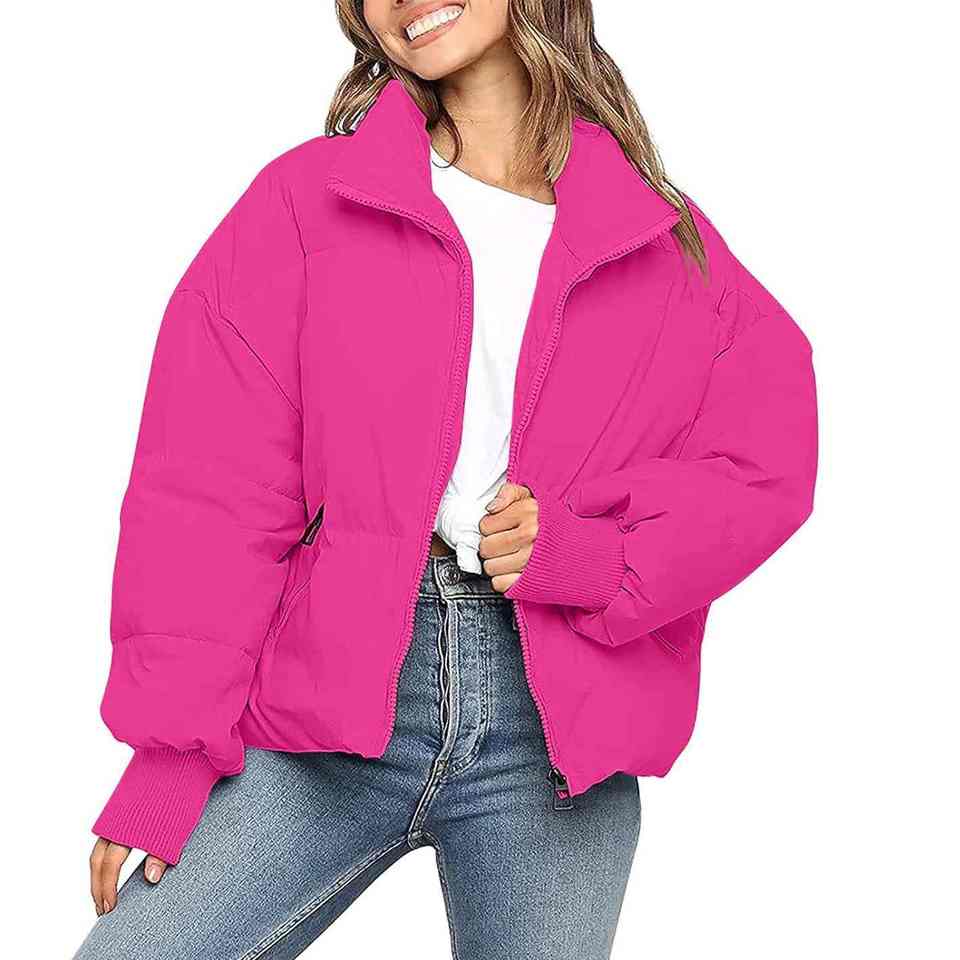Blouson matelassé unisexe coupe classique avec fermeture éclair, en tissu enduit imperméable et coupe-vent, à manches longues, pour le printemps et le quotidien