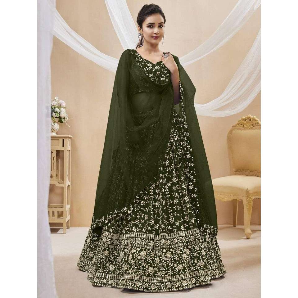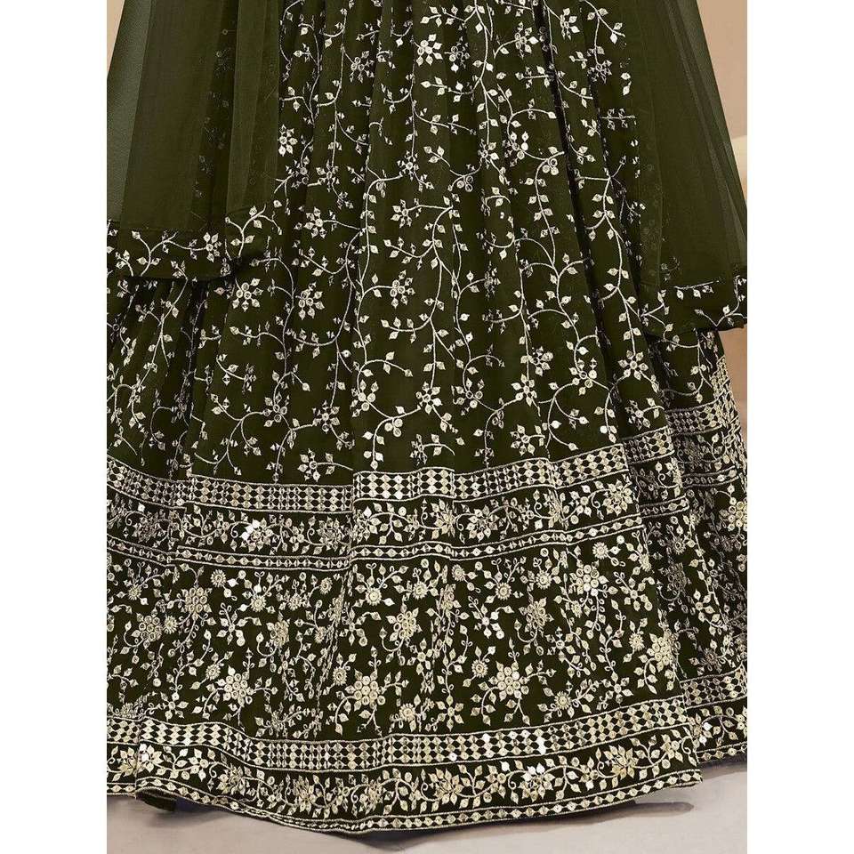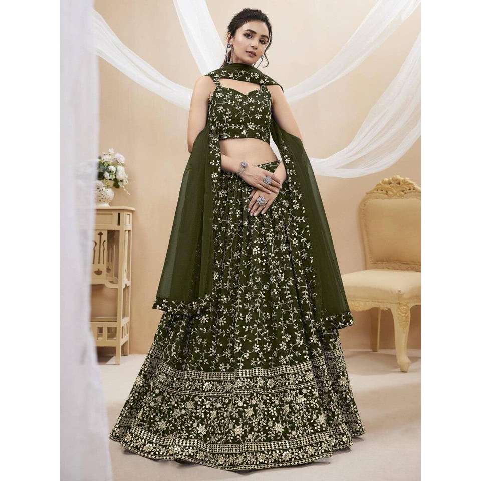 Magnifique paillettes vertes Georgette Mehendi Wear Lehenga Choli