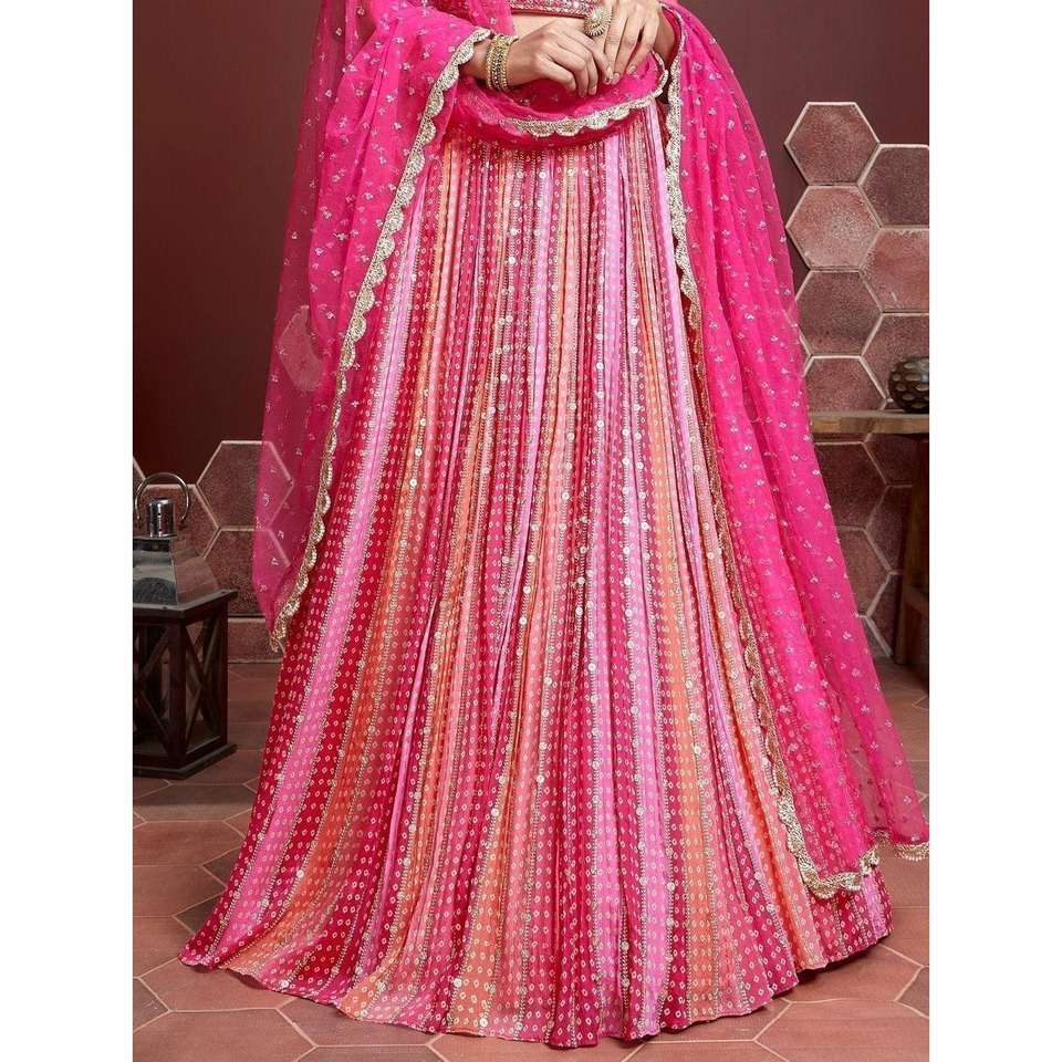 Wonderful Pink Embroidered Chinon Silk Wedding Wear Lehenga Choli