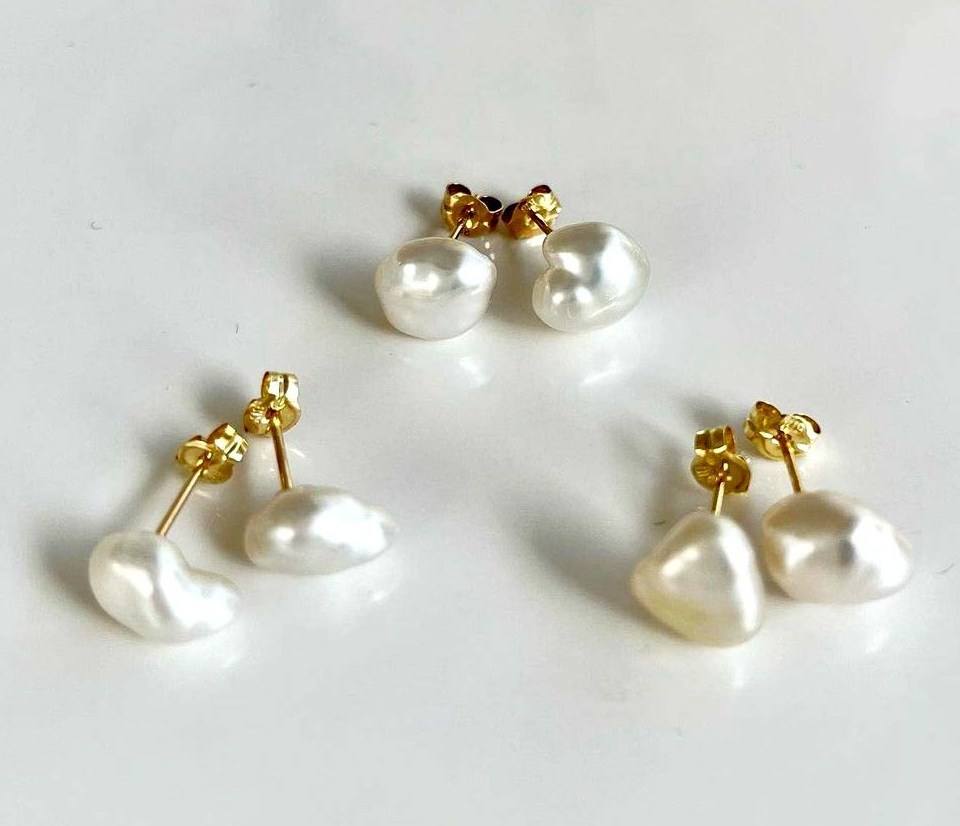 Wonderful Quality White Pearl 8-10mm Natural Shape Religious Gemstone 925 Sterling Silver Gold Plated Stud Earring Wedding