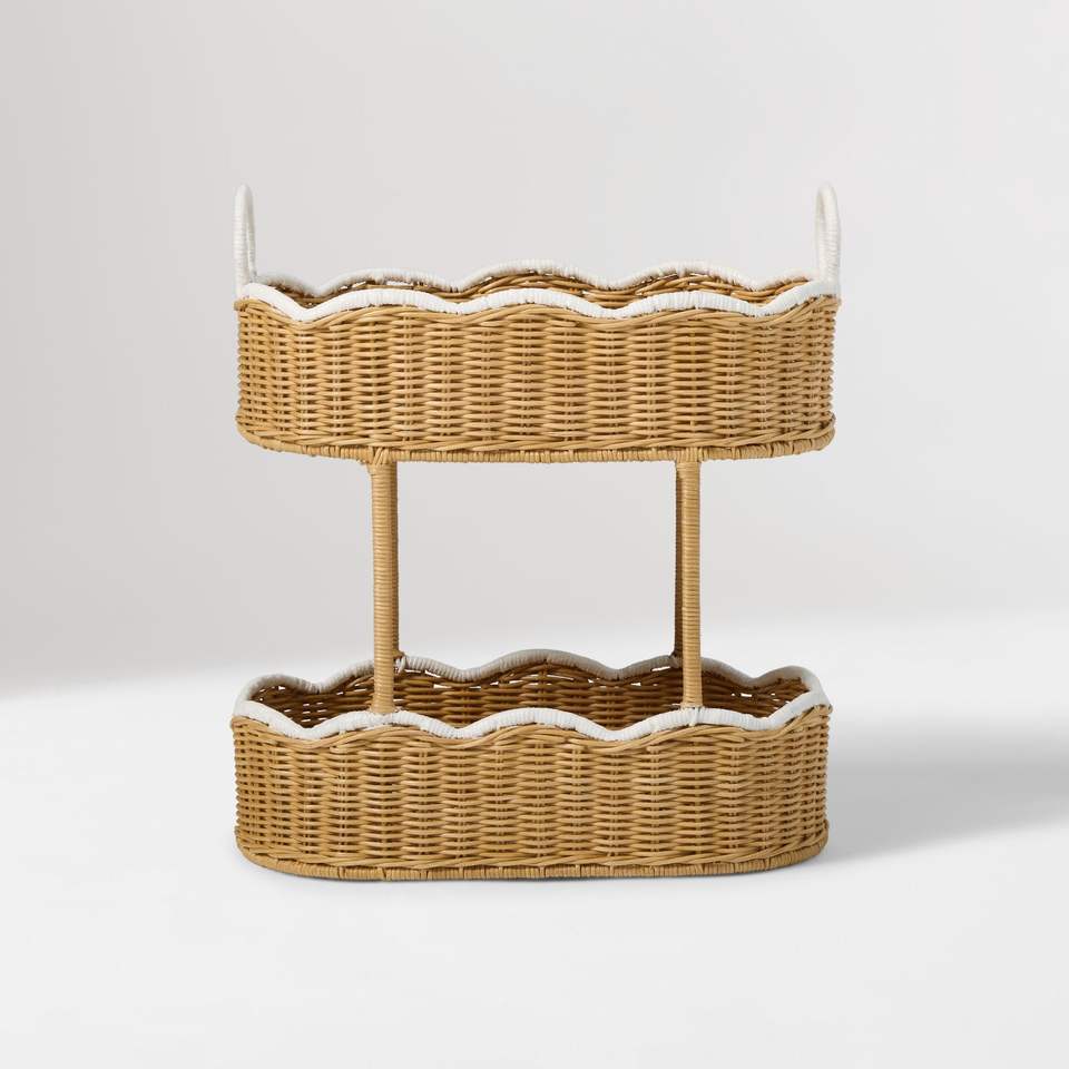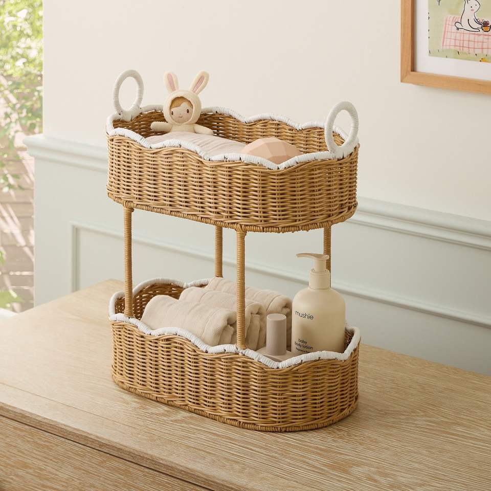 Magnifique panier en osier à deux niveaux, panier de rangement décoratif, panier organisateur en rotin naturel, parfait pour le rangement de la chambre d'enfant