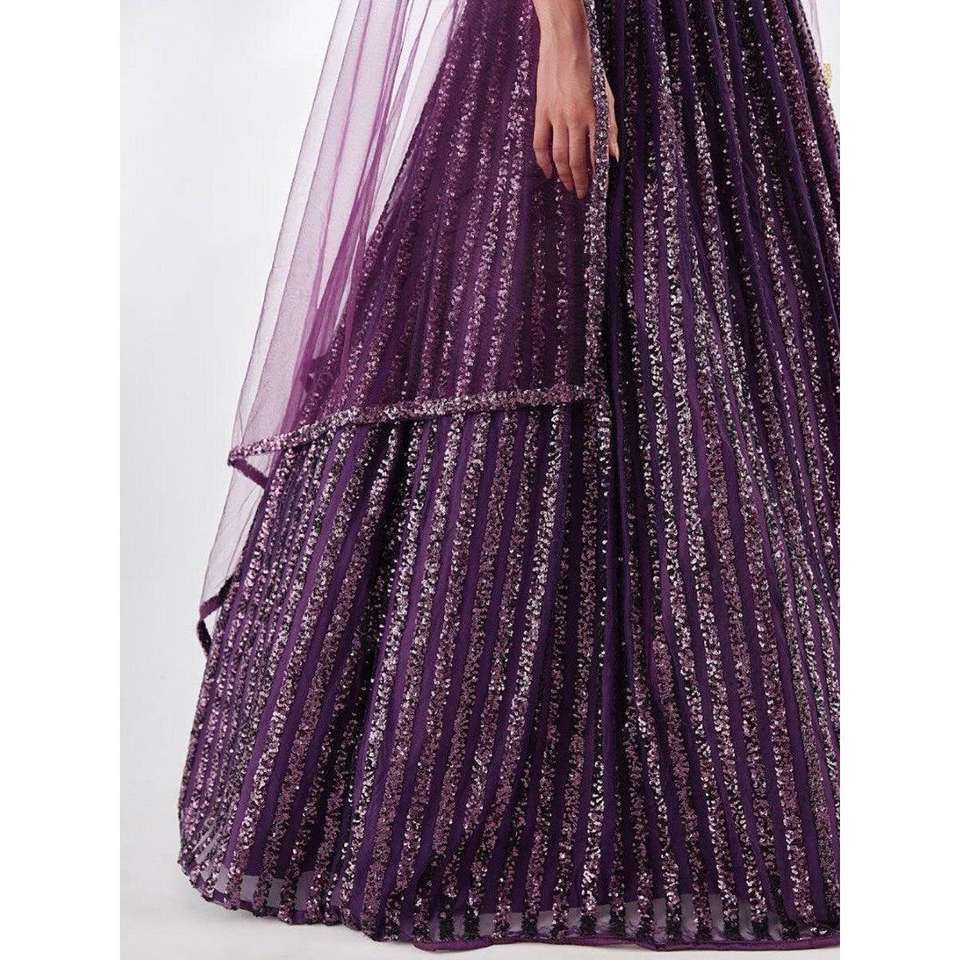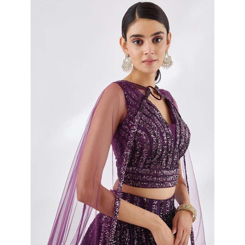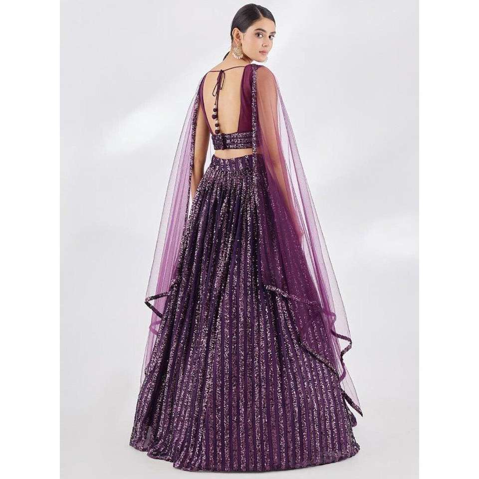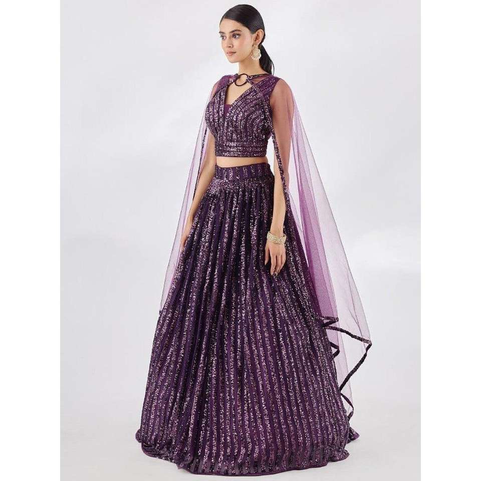 Wonderful Wine Sequins Georgette Party Wear Lehenga Choli With Dupatta