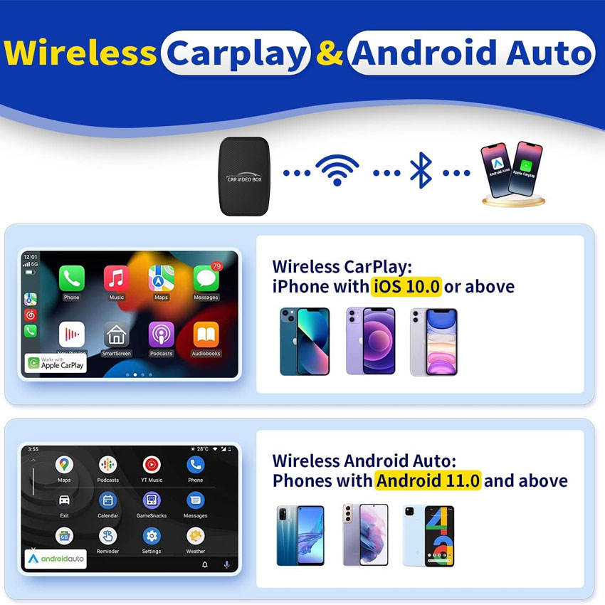 Wooboobox Boîtier Voiture Android Portable avec Système Android, YouTube, Netflix, Android Auto Sans Fil et Carplay, Boîte AI Android