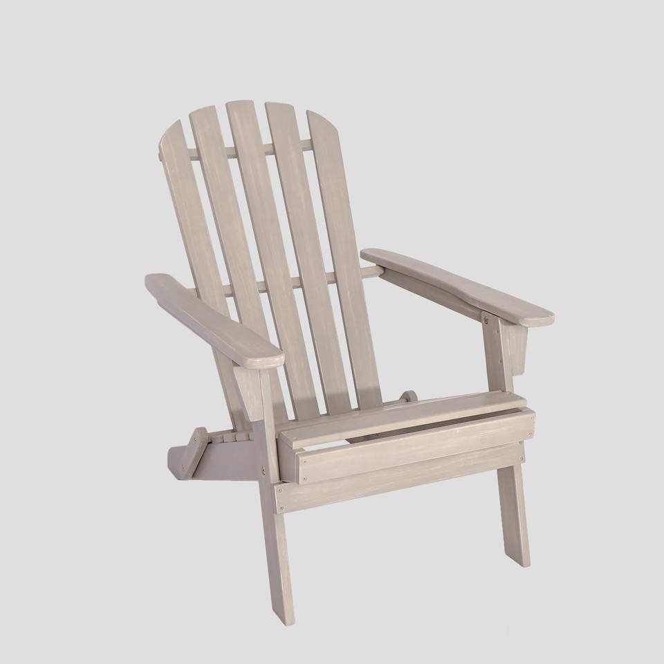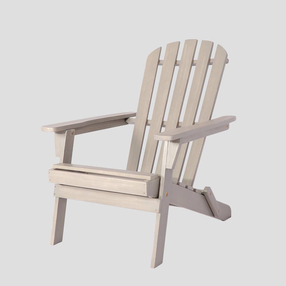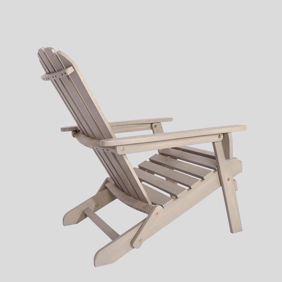 Chaise Adirondack en bois, fabriquée avec une structure en bois massif et un design à lattes larges, offrant un confort de siège relaxant en extérieur