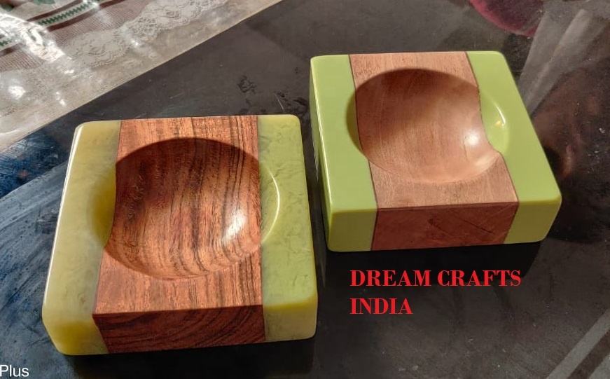 Plateau à cendrier en bois massif de forme carrée moderne, Joint en résine transparente avec Logo, accessoire de fumage d'intérieur et d'extérieur Portable