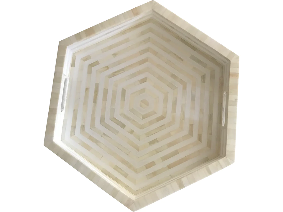 Plateau de service carré traditionnel en bois avec incrustations d'os | Plateau léger résistant à la chaleur fait à la main de luxe pour mariage | OEM/ODM Tailles personnalisées