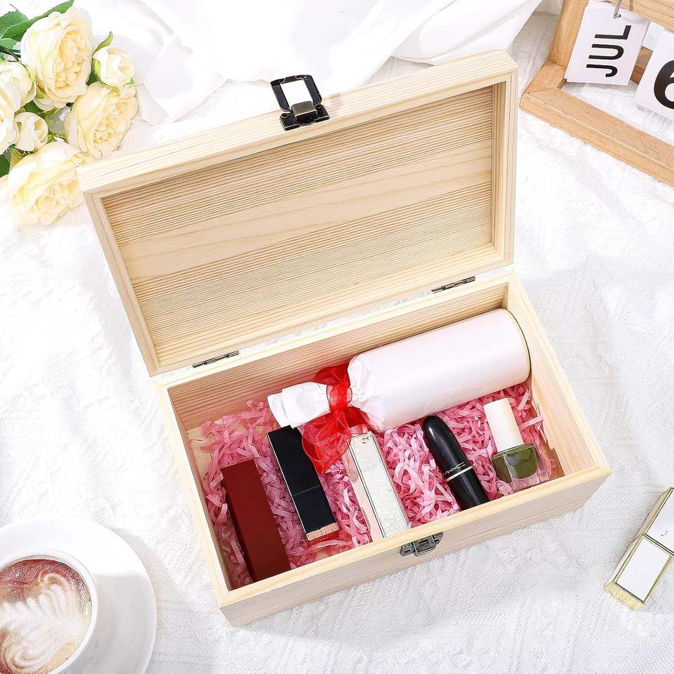 Boîte en bois avec couvercle à charnières - Grande taille 9,2"x5,5"x3,9" pour l'artisanat, le bricolage, le rangement de bijoux et de cadeaux, et l'organisation de loisirs créatifs