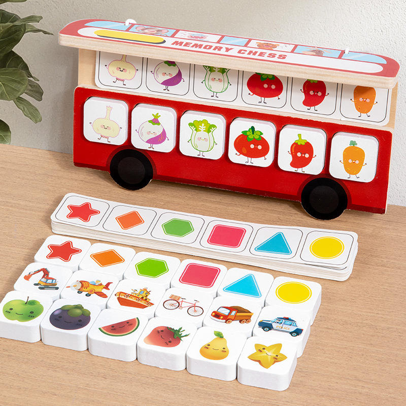 Jeu de société éducatif pour enfants en bois, jeu de mémoire, jeu de correspondance de formes, jeu de reconnaissance des fruits, jeu interactif parent-enfant sur le thème du trafic