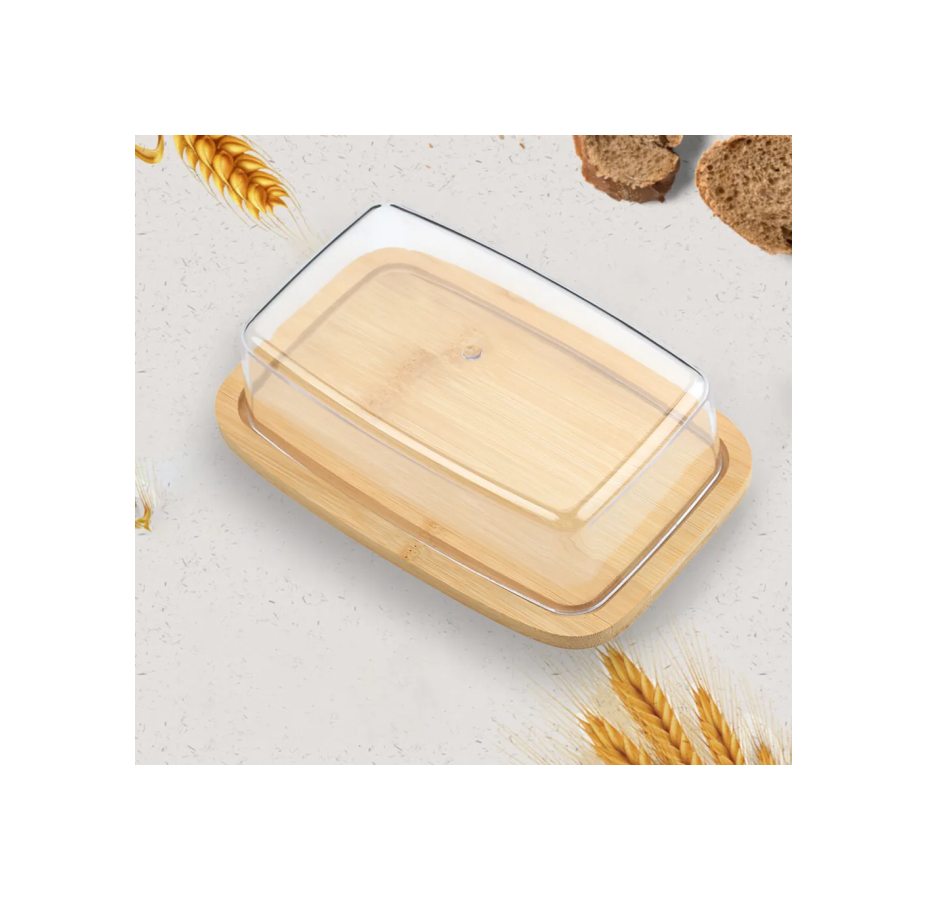 Boîte à beurre en bois avec couvercle en acrylique Ustensiles de cuisine Article Conteneur de stockage Boîte Beurre pour pièce de couleur bois naturel