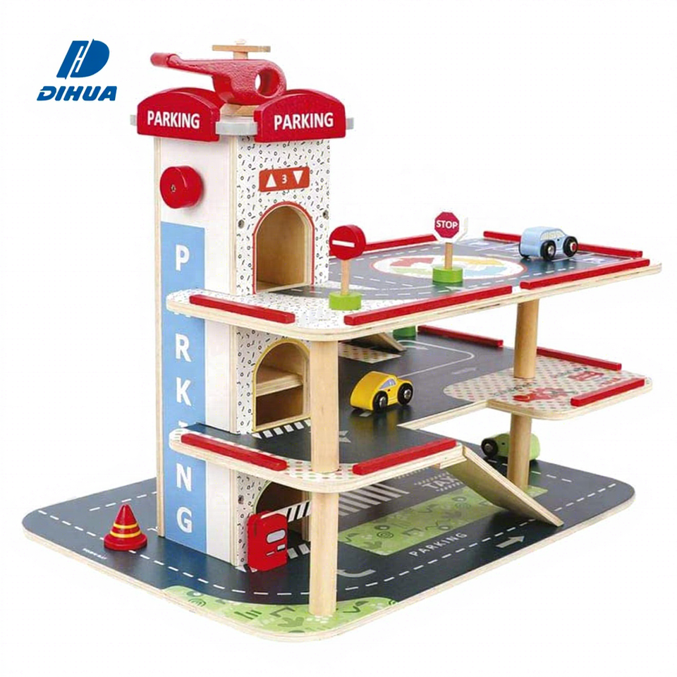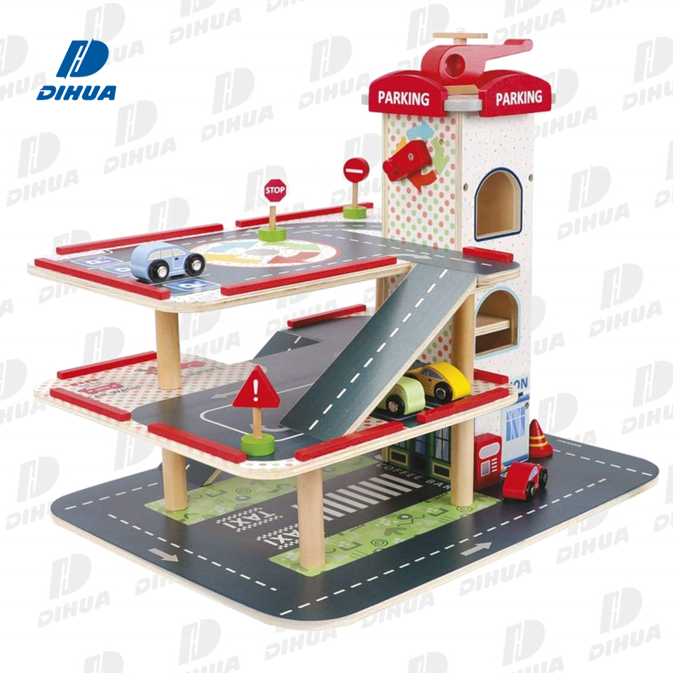 Ensemble de jeu en bois pour enfants, garage à plusieurs niveaux, parking, jouet éducatif précoce, jeu de rôle, parking en bois pour voitures