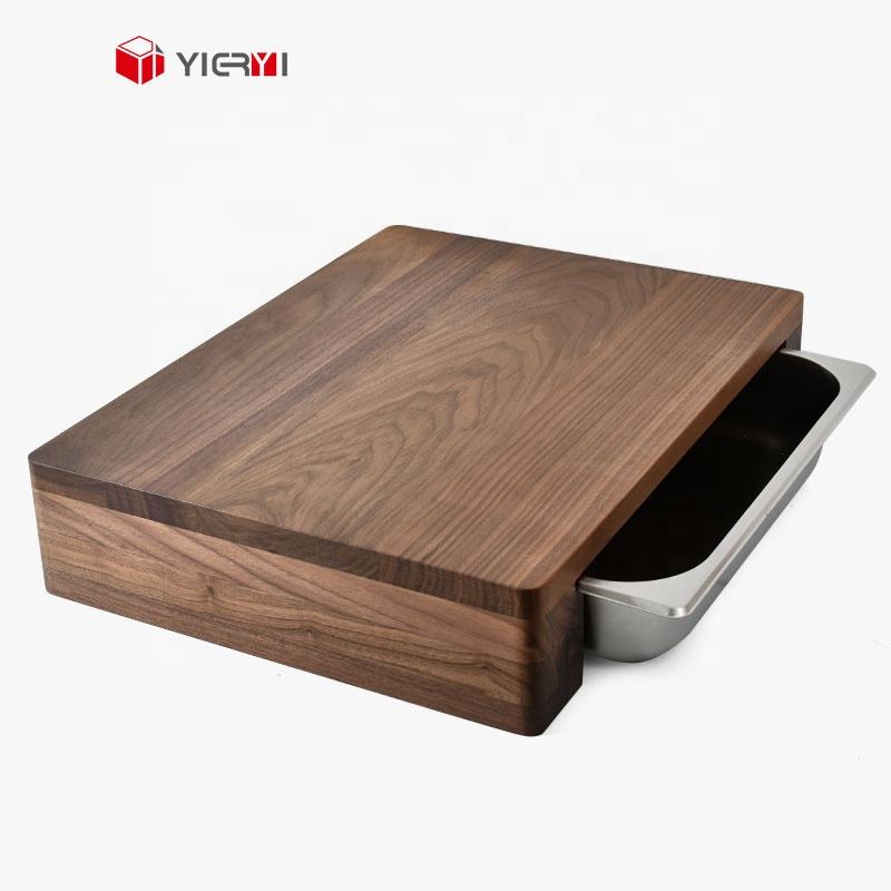 Planche à découper en bois avec tiroir coulissant en acier inoxydable plateau conteneurs planche à découper en bois pour la cuisine couper les légumes