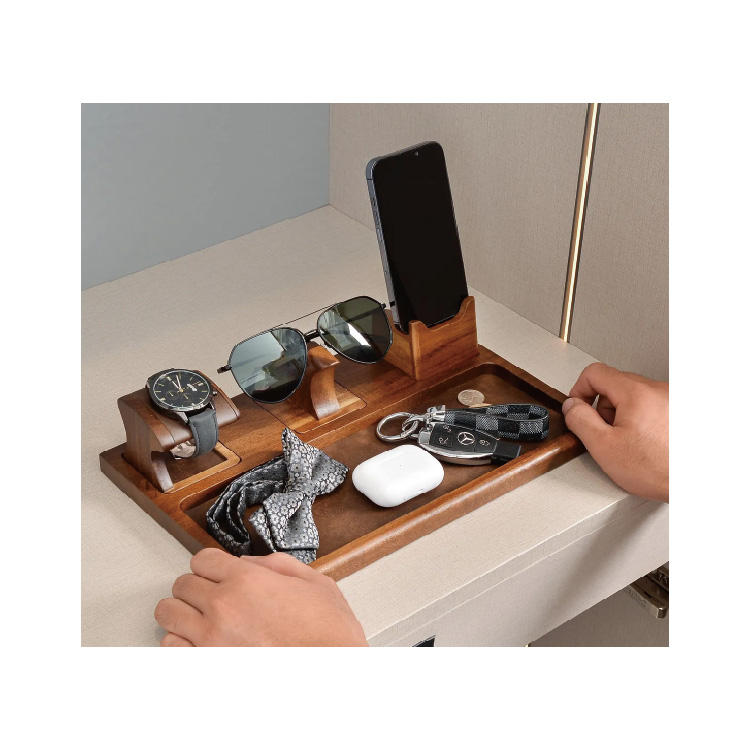 Nom du produit:Station d'accueil en bois pour hommes personnalisé gravé cadeau personnalisé
