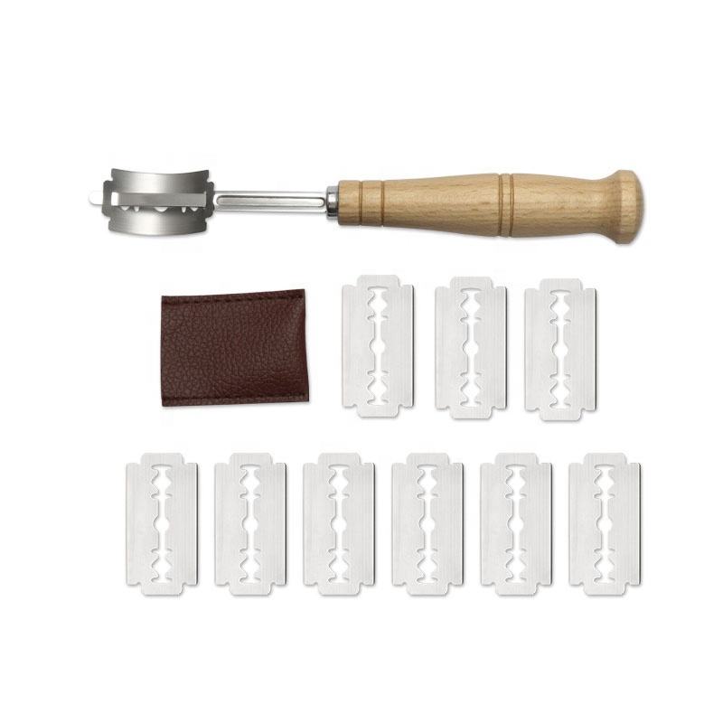 Lame à pain en acier inoxydable, outil manche en bois de bambou, jeu de lames à pain, outil de broyage, cuisson de la pâte, couteau de marquage