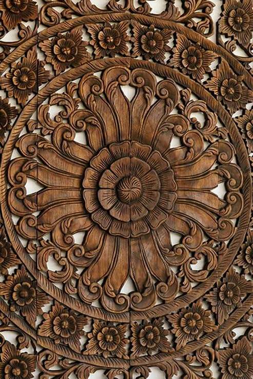 Panneau mural en bois et MDF, motif floral mandala carré, 36 x 36 pouces, décoration murale traditionnelle sculptée pour les espaces de vie et les chambres à coucher