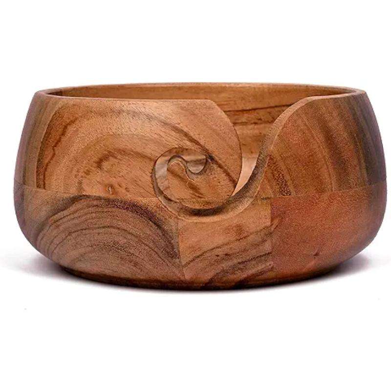 Bol de rangement de fil en bois avec sculpture décorative gril artisanal à tricoter et accessoires au crochet fournitures