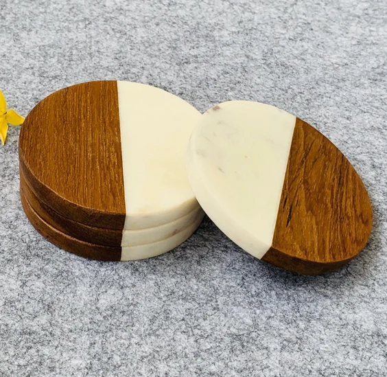Dessous de verre en bois et marbre sous-verres isolés en marbre personnalisés Dessous de verre en bois d'acacia et marbre personnalisés