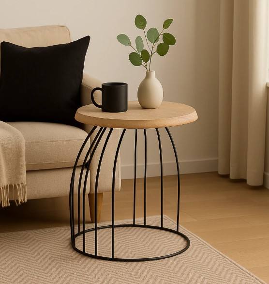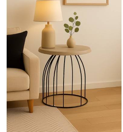 Meubles de Table de chevet demi-ronds en bois et métal pour la maison de luxe meubles décoratifs cadre en fil de métal avec Table d'appoint supérieure en bois