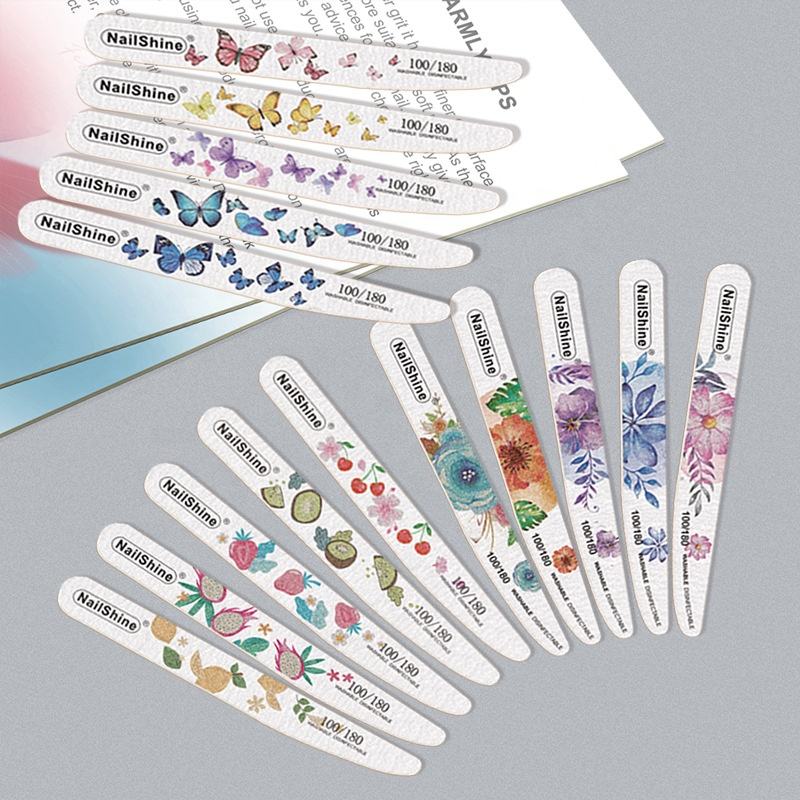 Lime à ongles en bois à motifs floraux, lime à ongles fine, outils à ongles jetables, fabrication et vente en gros