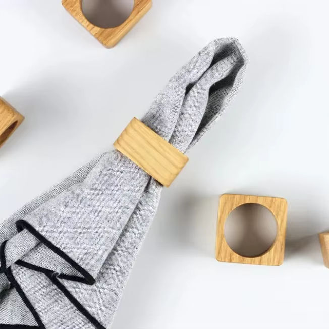 Anneaux de serviette en bois. Décoration de table pour réceptions.