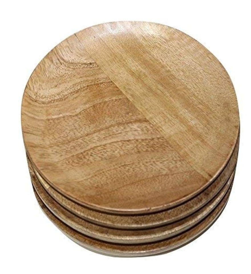 Assiette en bois écologique couleur naturelle de haute qualité, lot de 6 pièces, nouvellement conçue, résistante au lave-vaisselle, ronde, pour la maison et les mariages