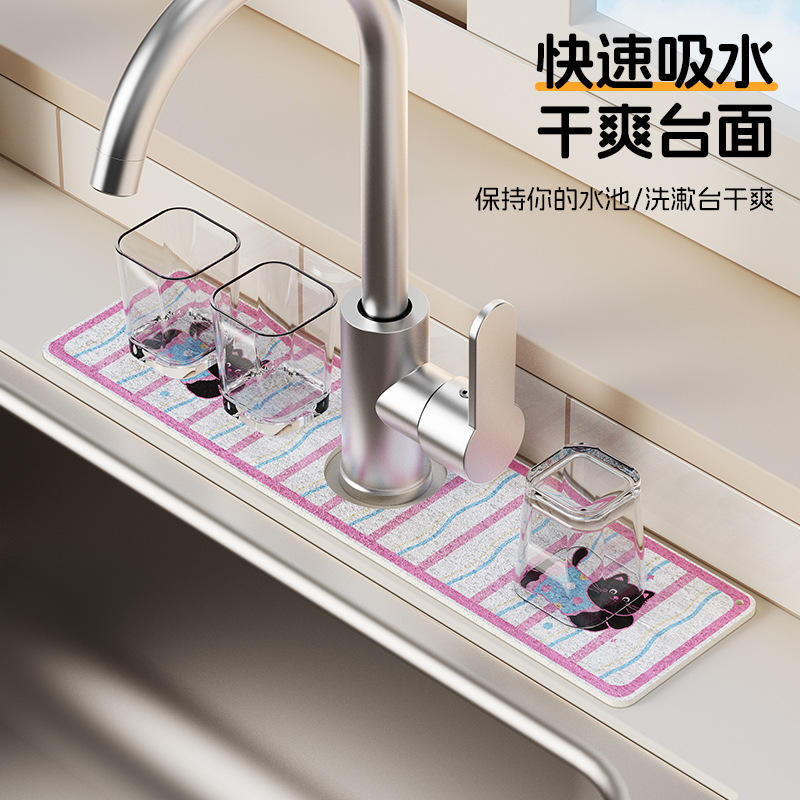 Wood Pulp Cotton Faucet Absorbent Mat 6.5Cm Hole Non Slip Kitchen Sink Drain Mat Rectangle Novelty Style