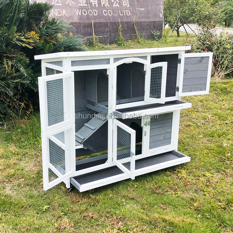 Cage à lapins en bois avec roue, maison à deux étages pour cochons d'Inde, pour l'extérieur et l'intérieur, vente en gros d'usine