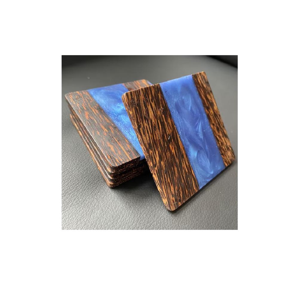 Dessous de verre en résine de bois Tasse Forme carrée Dessous de verre en résine pour boissons Offre Spéciale de couleur vert et bleu et bleu ciel