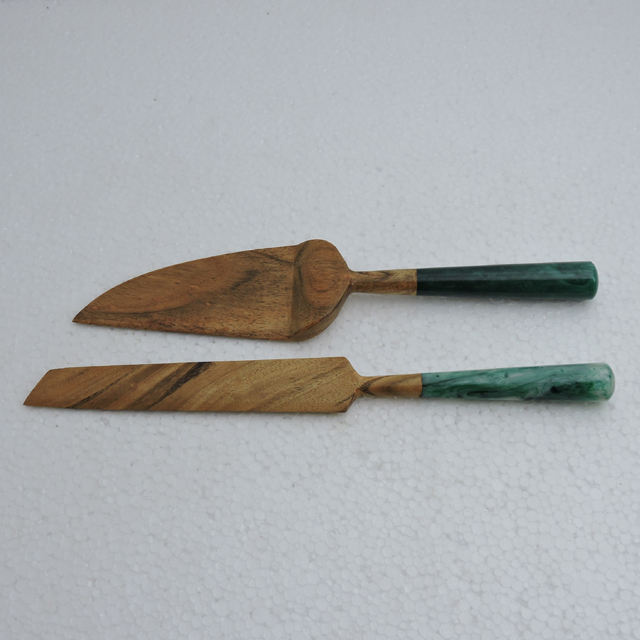 Bois et résine poignée gâteau couteau ensemble en gros à la main gâteau désert couteau outils ensemble vente chaude 2024
