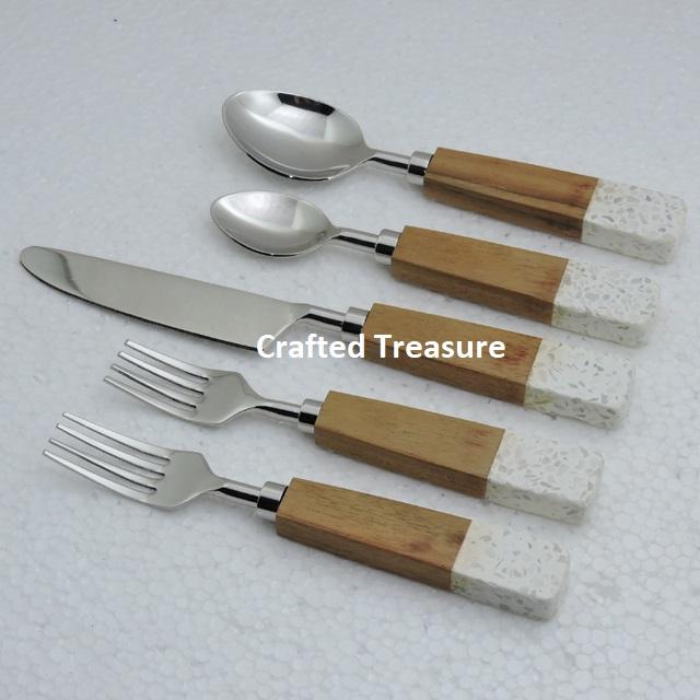 Ensemble de couverts à manche en bois et en résine Ensemble de couverts en argenterie Ensemble de cuillères et de fourchettes Ustensiles attrayants pour restaurant et hôtel en acier inoxydable