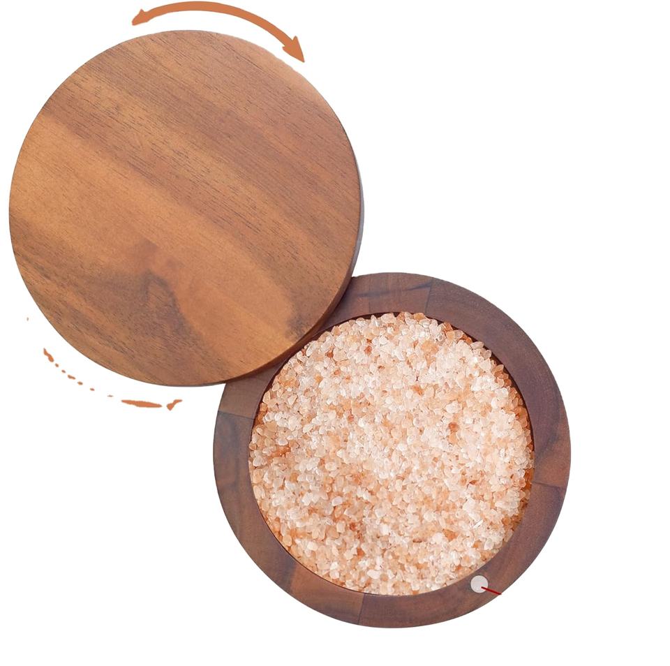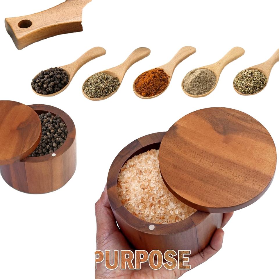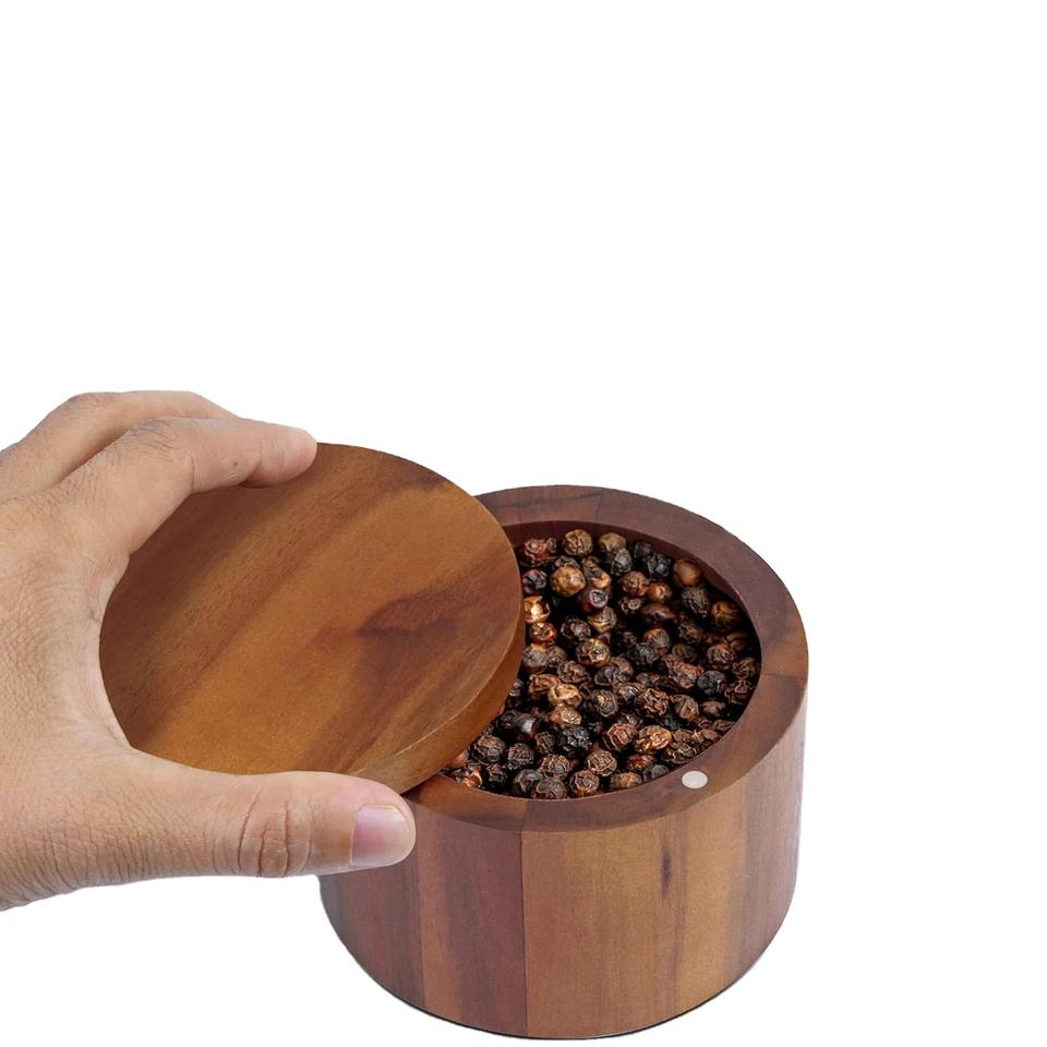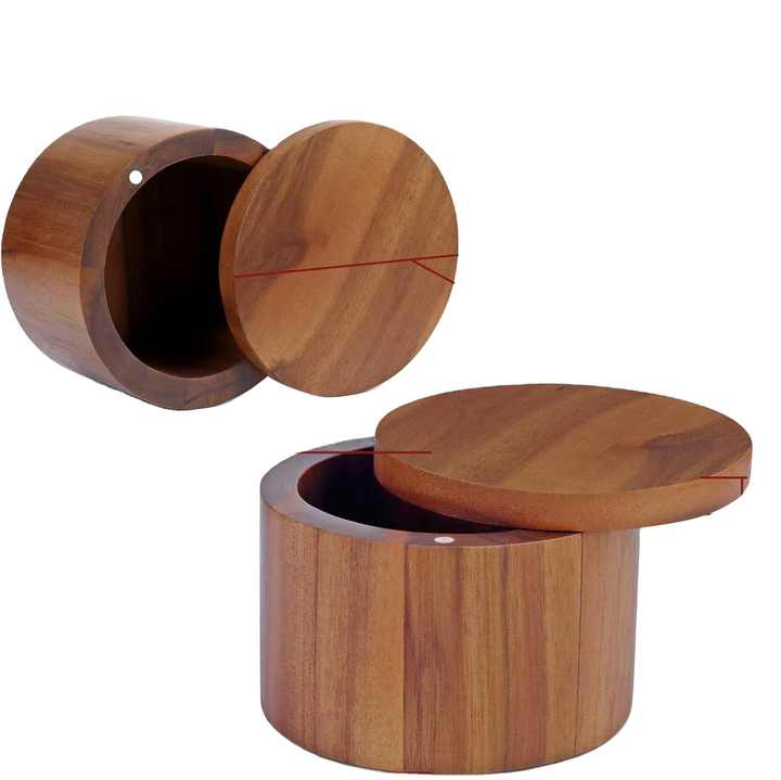 Boîtes à sel et à épices en bois avec couvercle pivotant Pot à sel en bois d'acacia Organisateur de boîte à recettes en bois rond