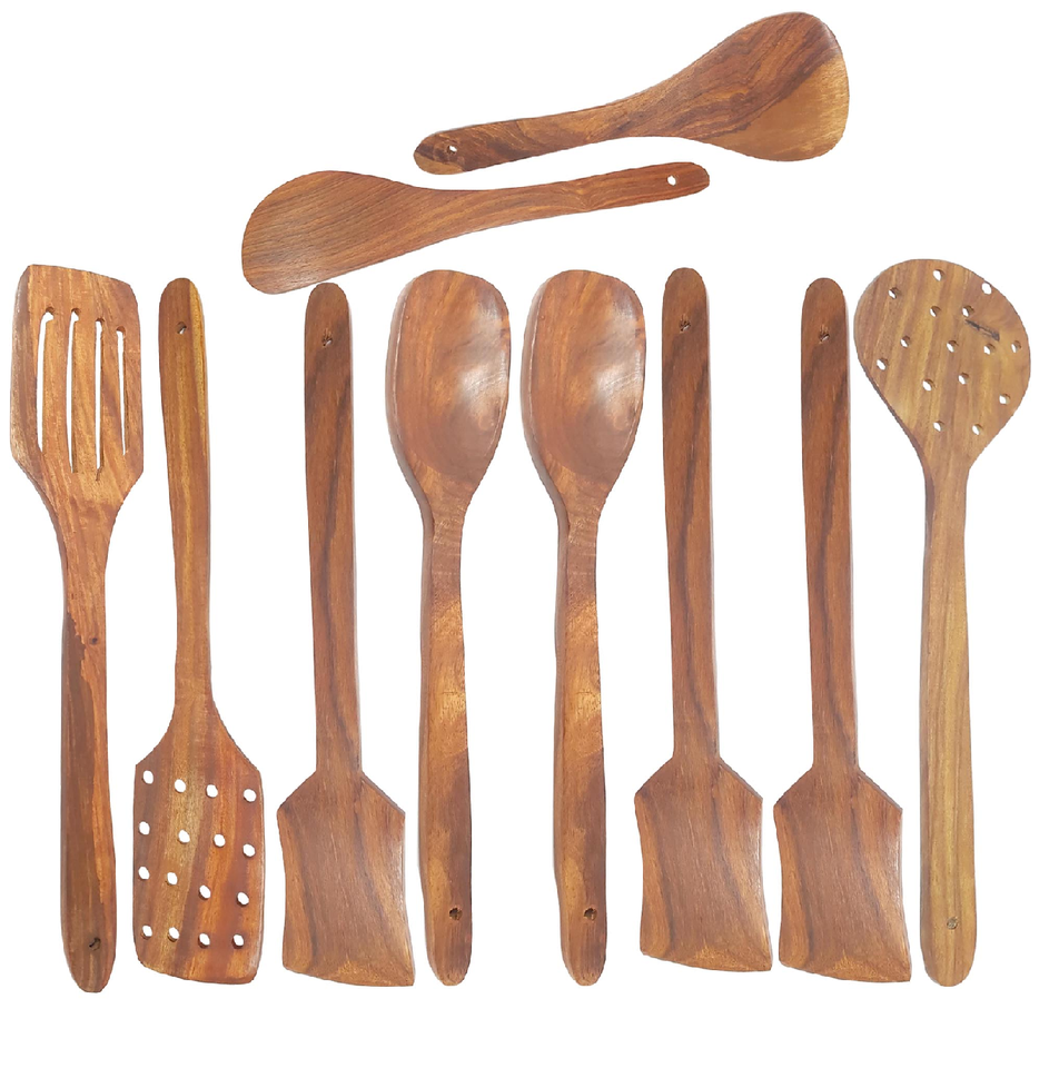 Ensemble de cuillères et spatules de service en bois de haute qualité, style indien, 2 pièces, ustensiles de cuisine, compatibles lave-vaisselle, durables