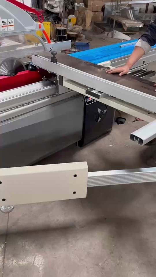Scie à panneaux à table coulissante en bois avec réglage d'angle électrique et levage électrique pour matériaux de construction