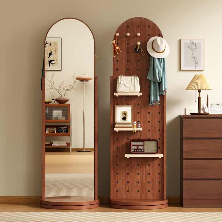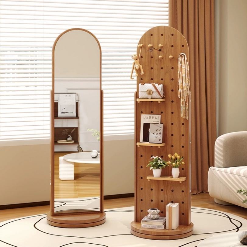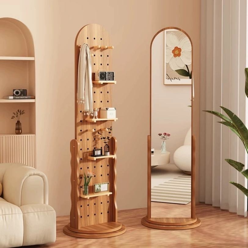 Miroir mural en bois avec cadre de rangement, panneau perforé en bois, design moderne et simple, vente chaude, miroir de salon en gros