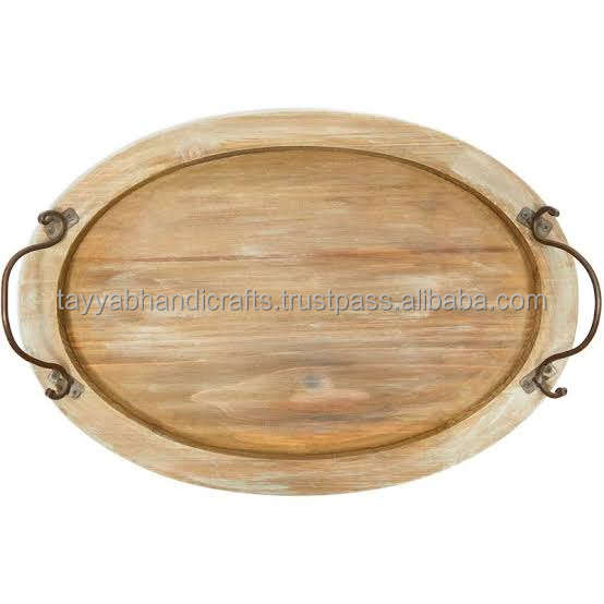 Le plus récent plateau en bois décor à la maison Design plateau en bois poignée en métal conception plateau de service en bois poli en forme