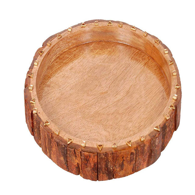 Plateau en bois Ustensiles de cuisine et décoration intérieure Design Plateau en bois Poignée en métal Design Plateau de service en bois poli en forme