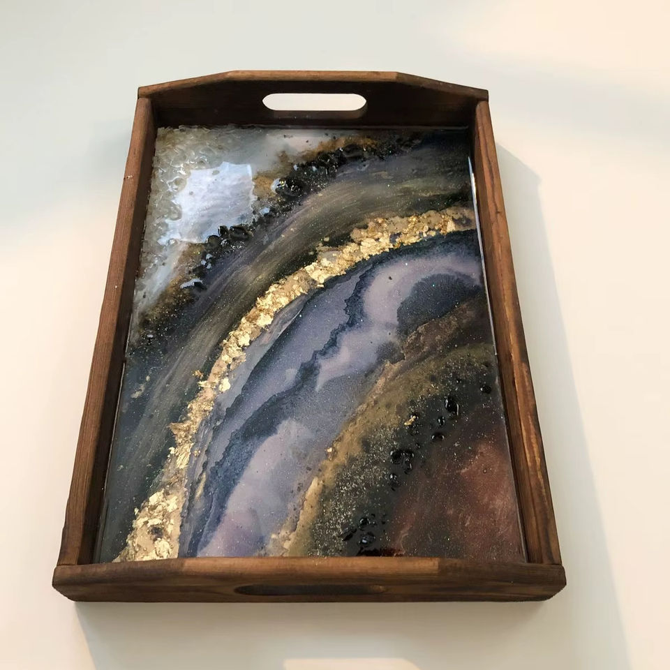 Table à manger de luxe en bois et résine, décoration d'intérieur, plateau de service alimentaire, cadeau de cuisine, Ramadan Diwali, design moderne, forme rectangulaire, légère