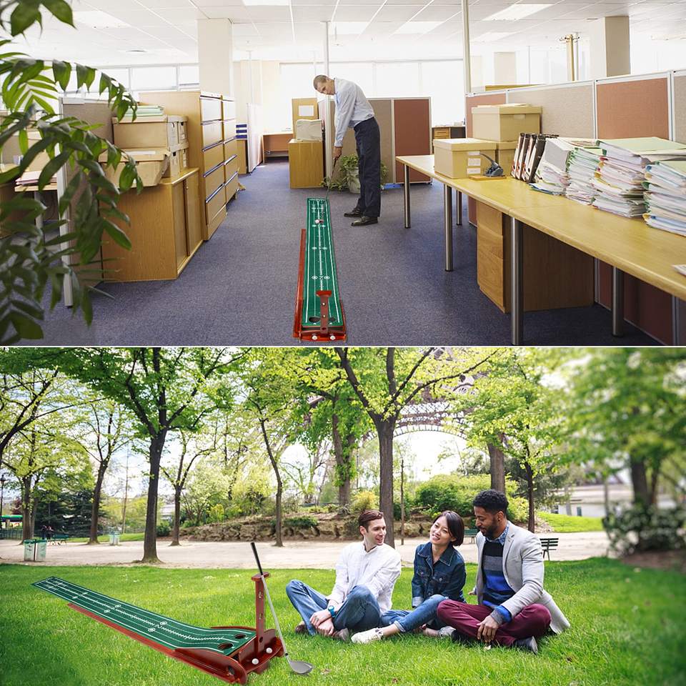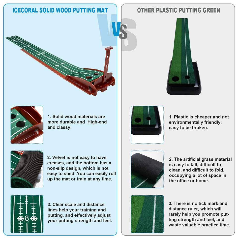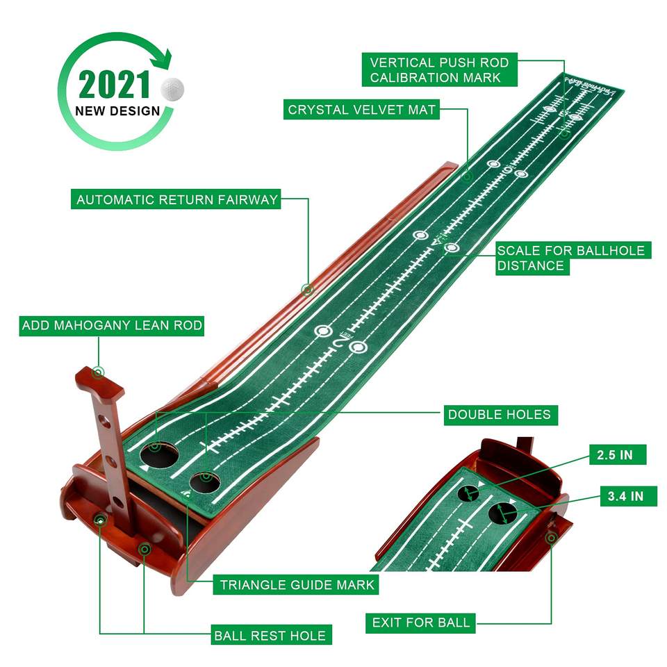 Tapis de golf en velours de bois avec système de retour automatique de balle Mini équipement de pratique de jeu de golf Utilisation intérieure et extérieure