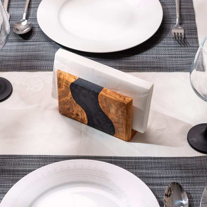 Wood and resin handcrafted luxury napkin holder elegant table accessory artistic tissue stand for premium dining decor