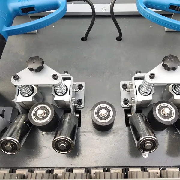 Panneau à base de bois MDF plaqueuse de chants biseautés automatique plaqueuse de chants droite en PVC à 45 degrés pré-fraisage coupe d'angle