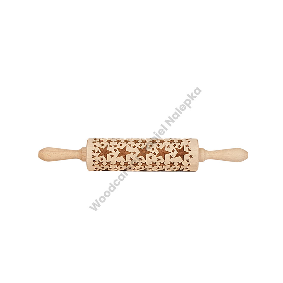WoodCarver Heavy Duty Eco-Friendly Beechwood Rolling Pin Star Engraving Dishwasher Safe OEM Bakery Equipment Bulk Orders